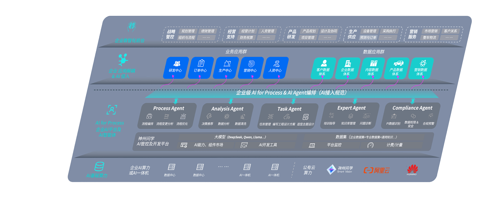 端到端的一站式AI工作空间深度融合了从企业战略规划到日常经营的全流程业务板块,,定向解决车企内部领域多、、、部门多、、、、链条长、、场景碎片化等难题,,,,支持车企快速构建以AI为核心的生产力写作体系,,实现任务执行与AI能力的无缝集成与交互